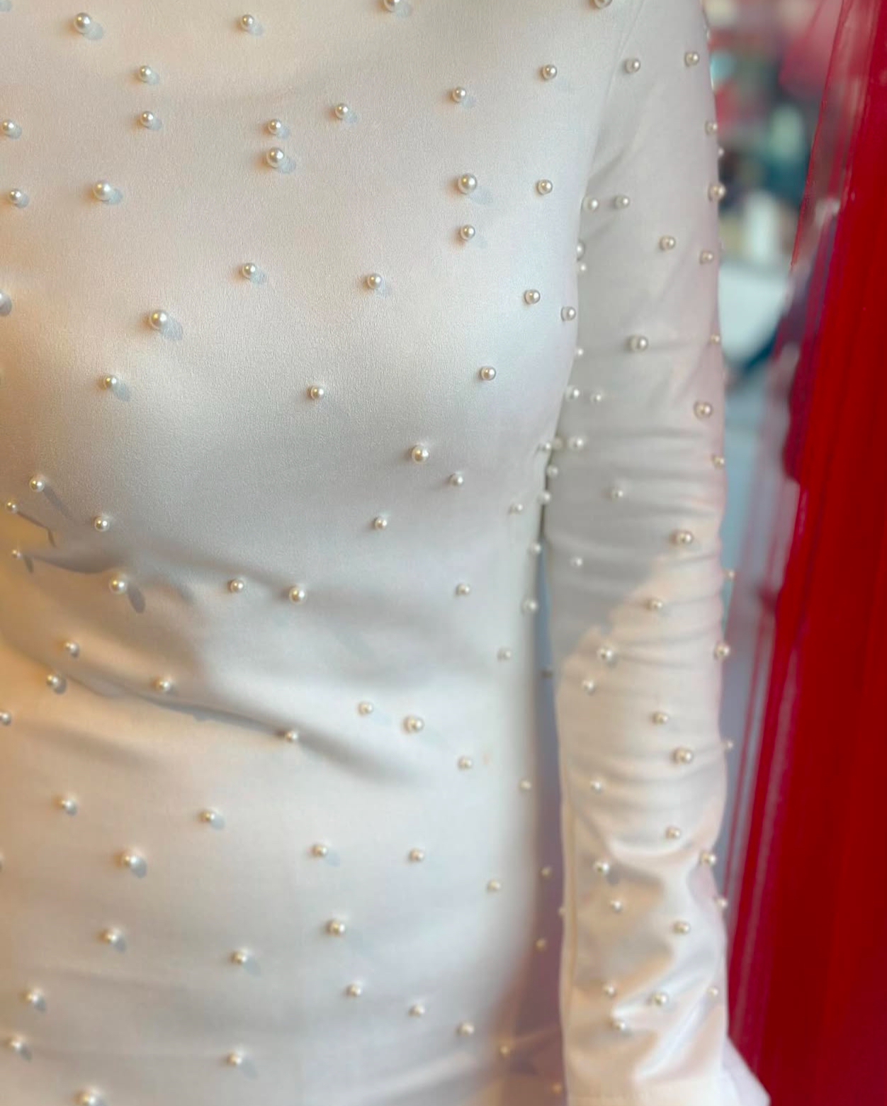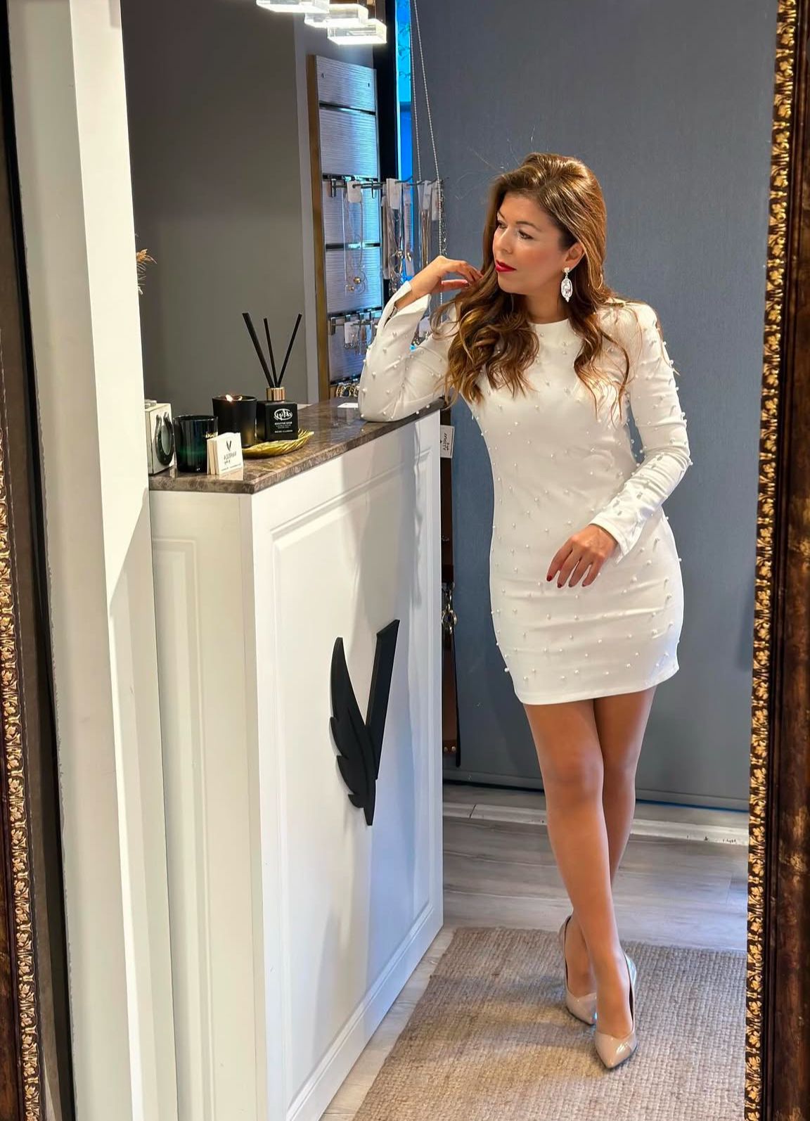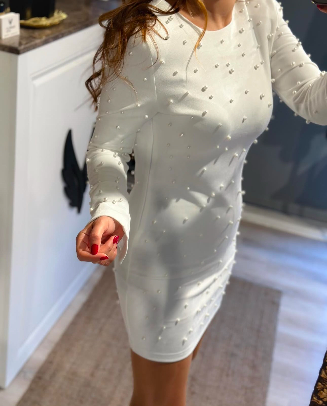 BEYAZ İNCİLİ SCUBA SÜET ELBİSE