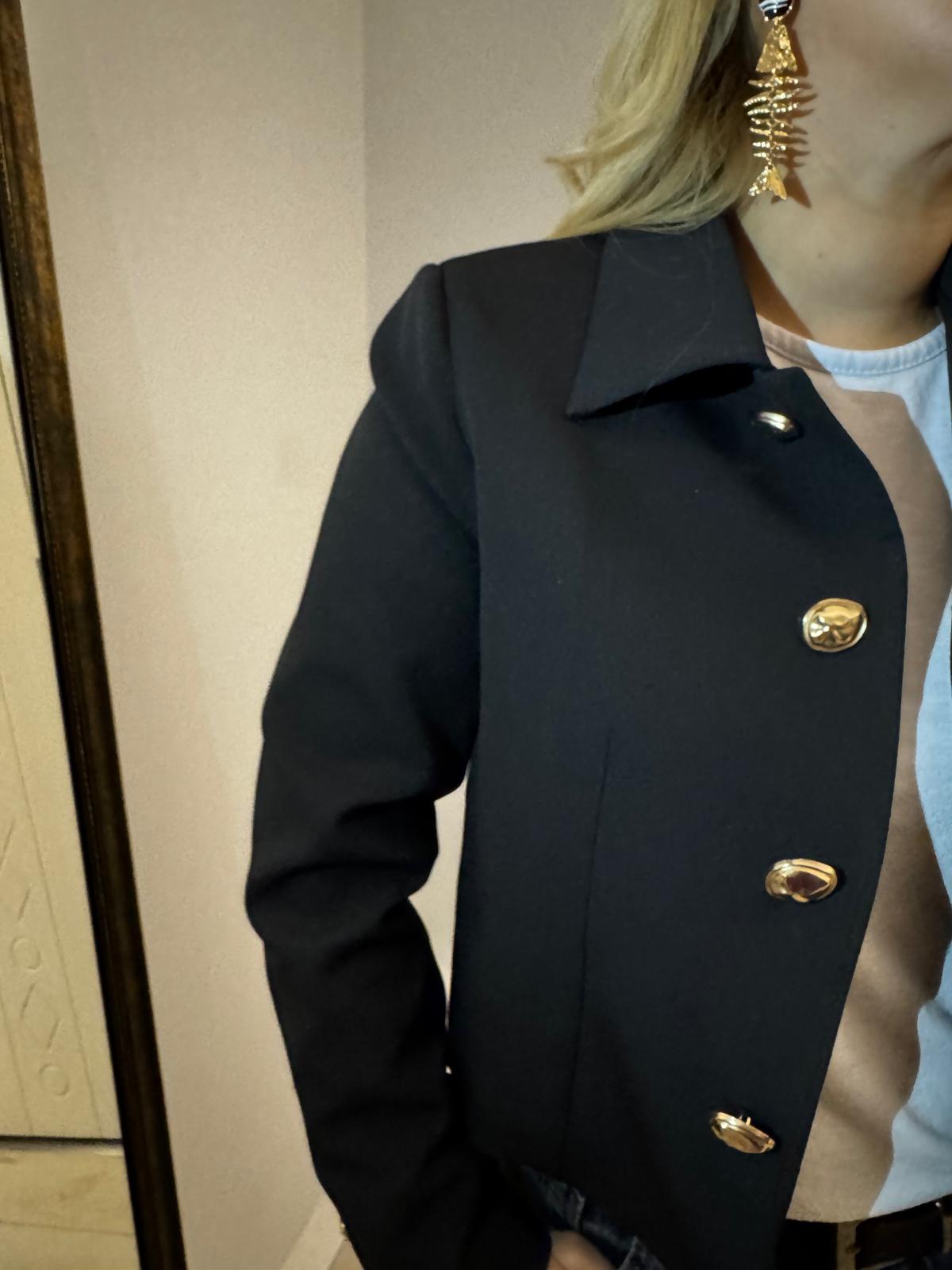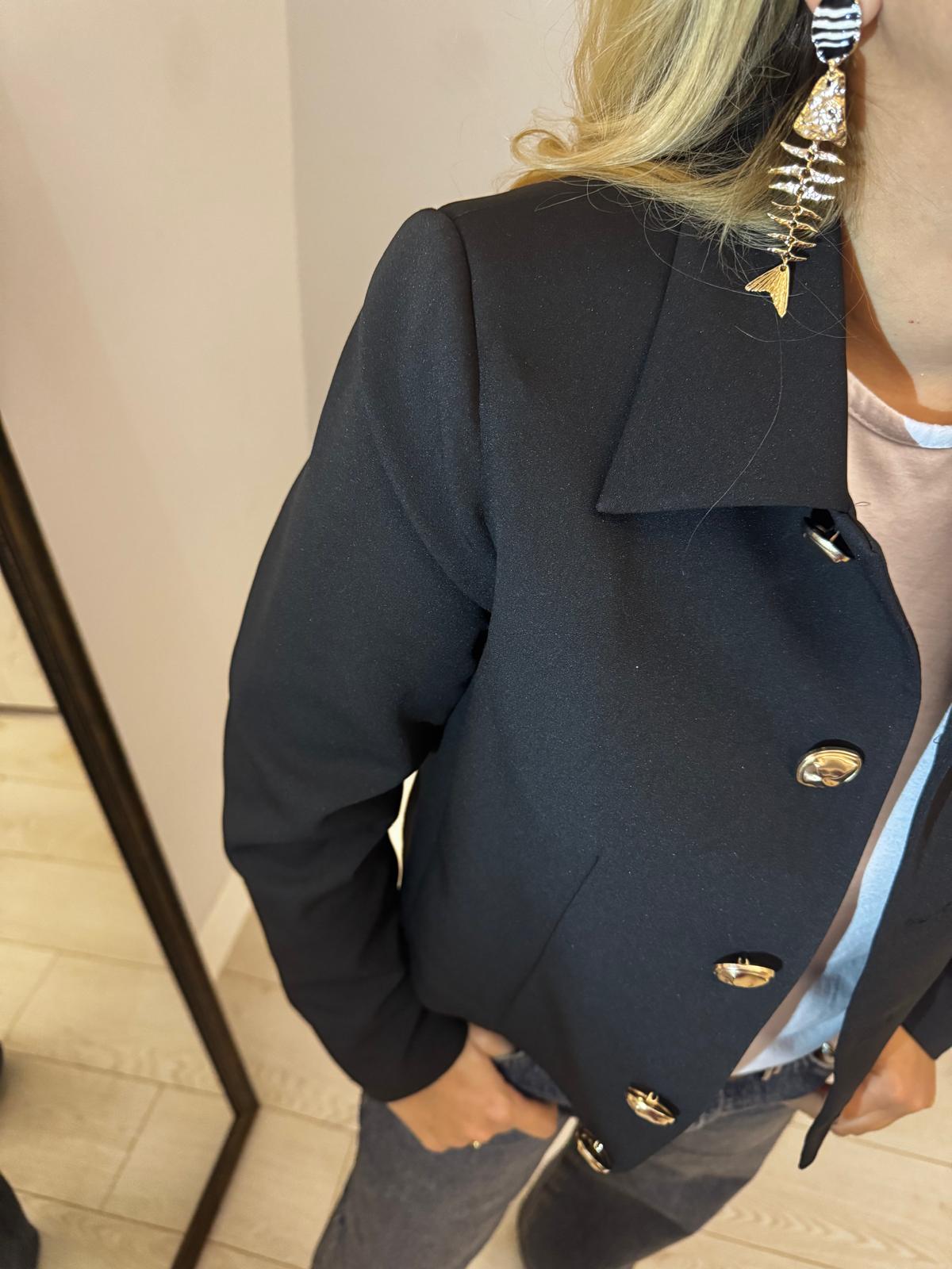 DÜĞMELİ SİYAH MİNİ CEKET