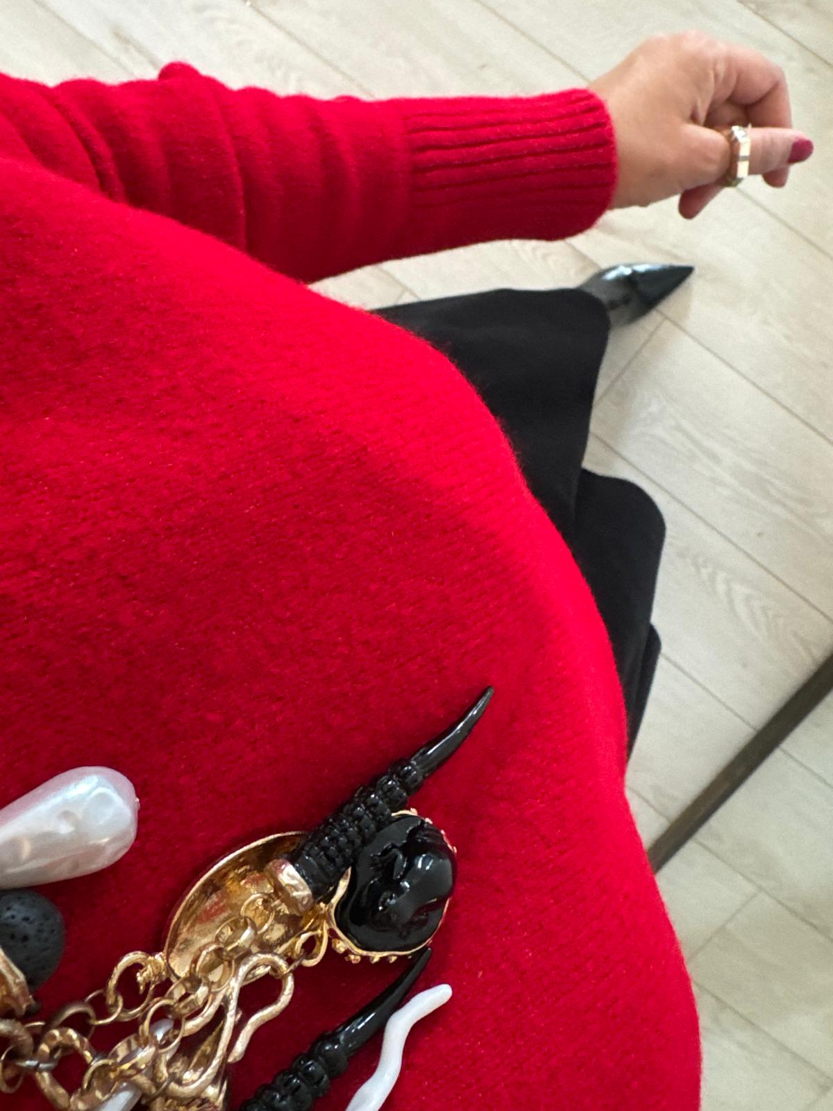 KIRMIZI BİSİKLET YAKA BEL BOY KAZAK