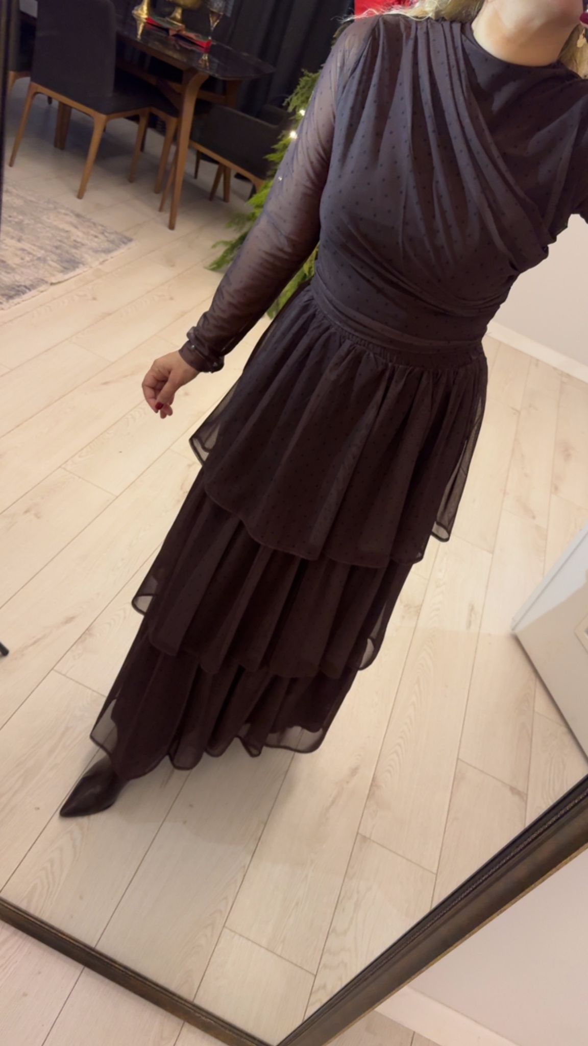 şifon kumaş içi astarlıdır üzerinde kendi tonundan minik puantiyeler vardır