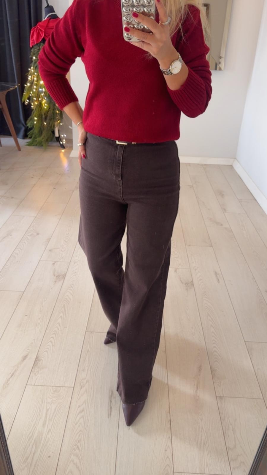KAHVE TAŞLANMIŞ KEMERLİ JEAN