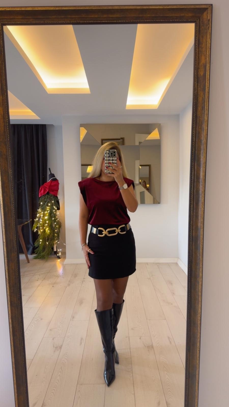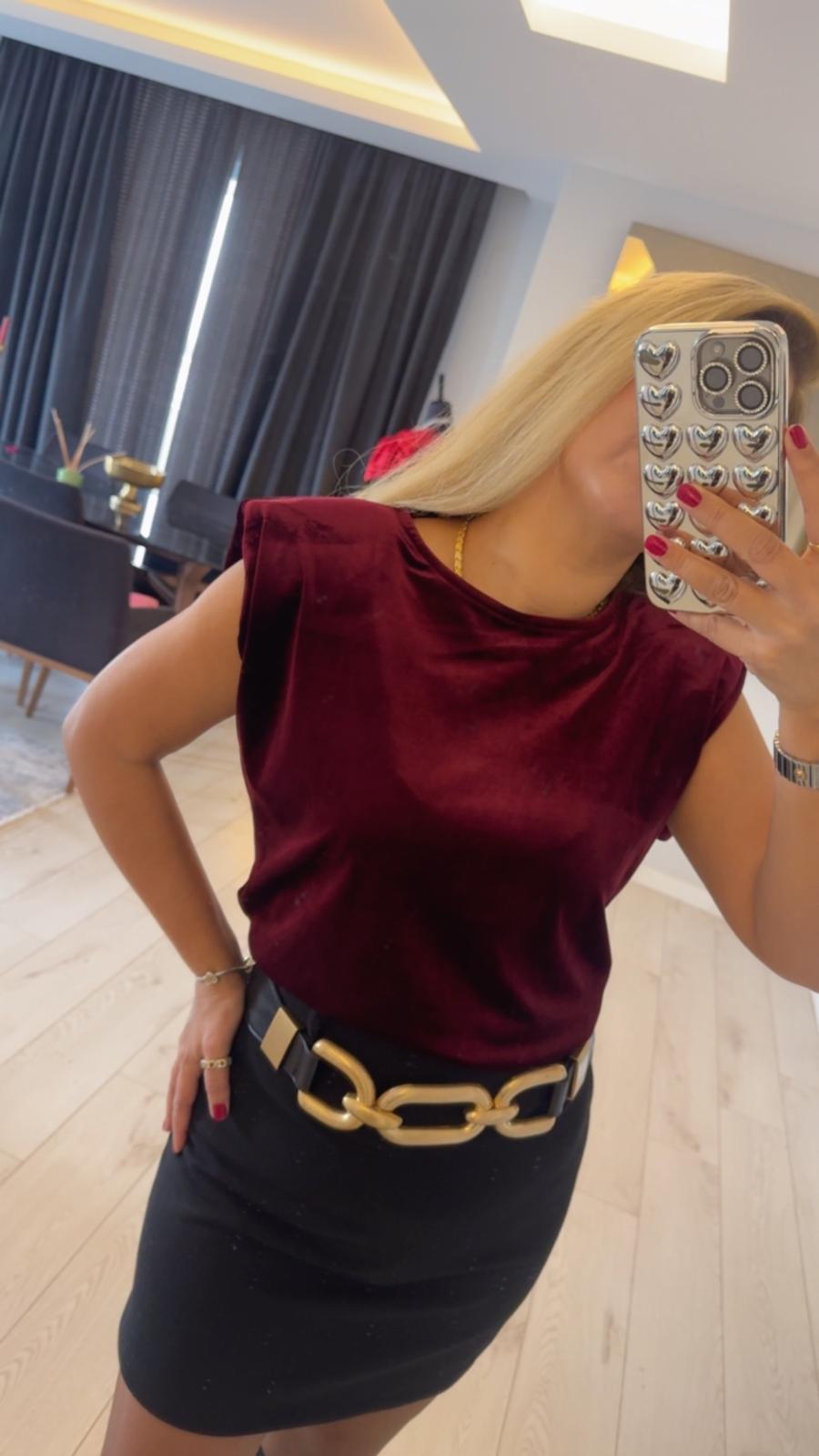 BORDO KADİFE DÖKÜMLÜ BLUZ