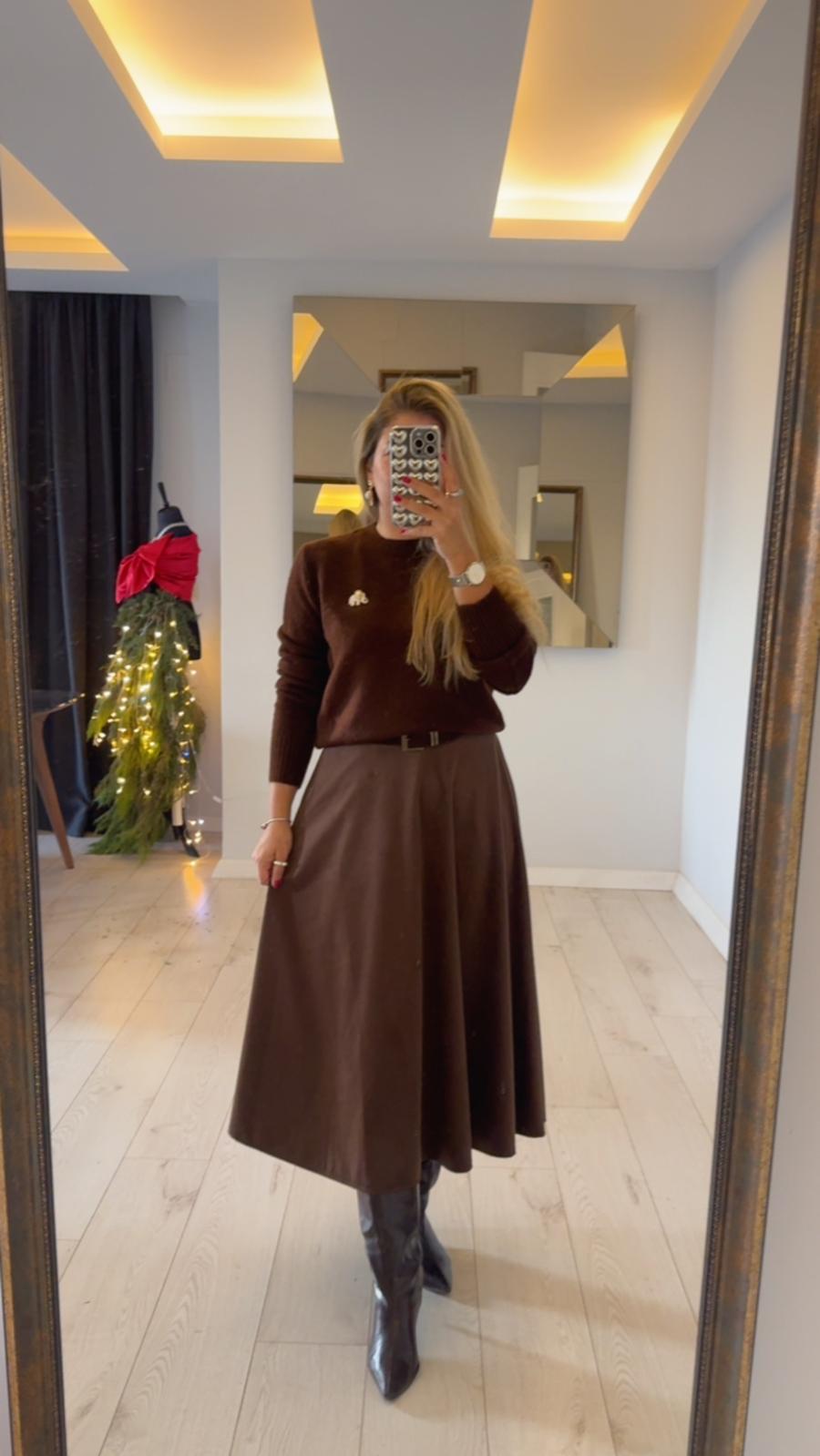 KAHVE BİSİKLET YAKA BEL BOY KAZAK