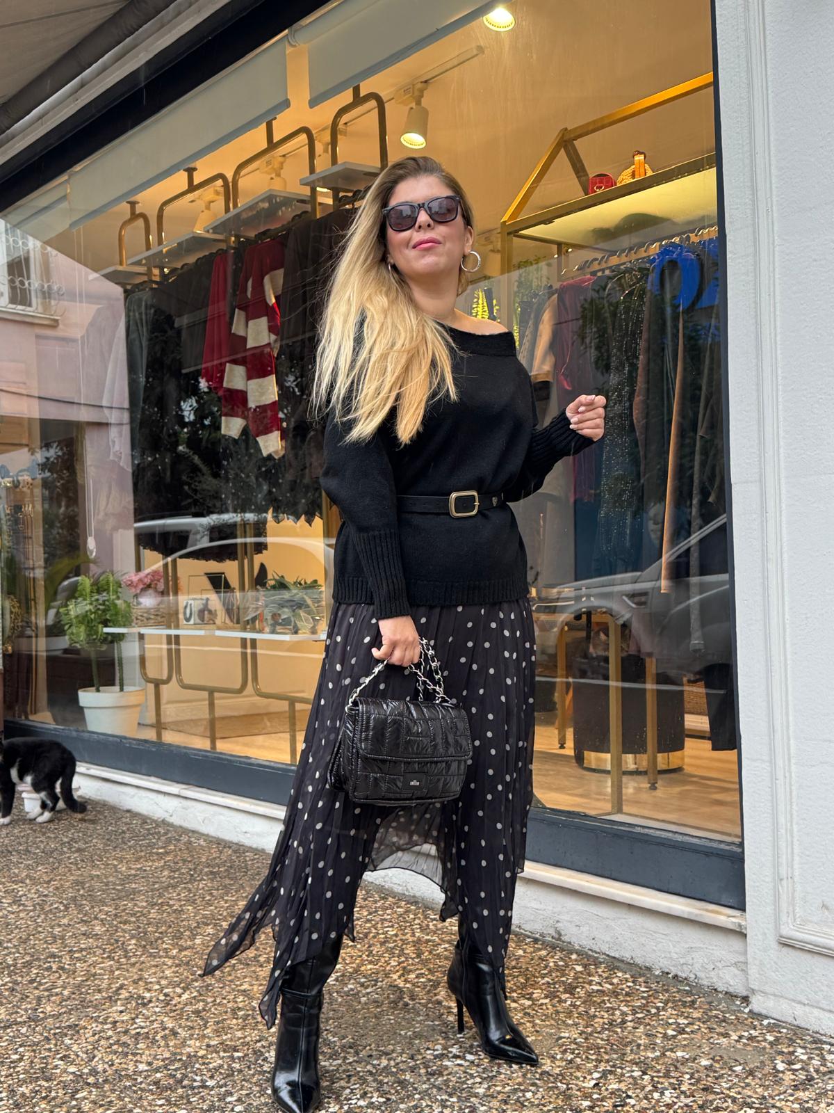SİYAH DÜŞÜK OMUZ KAZAK