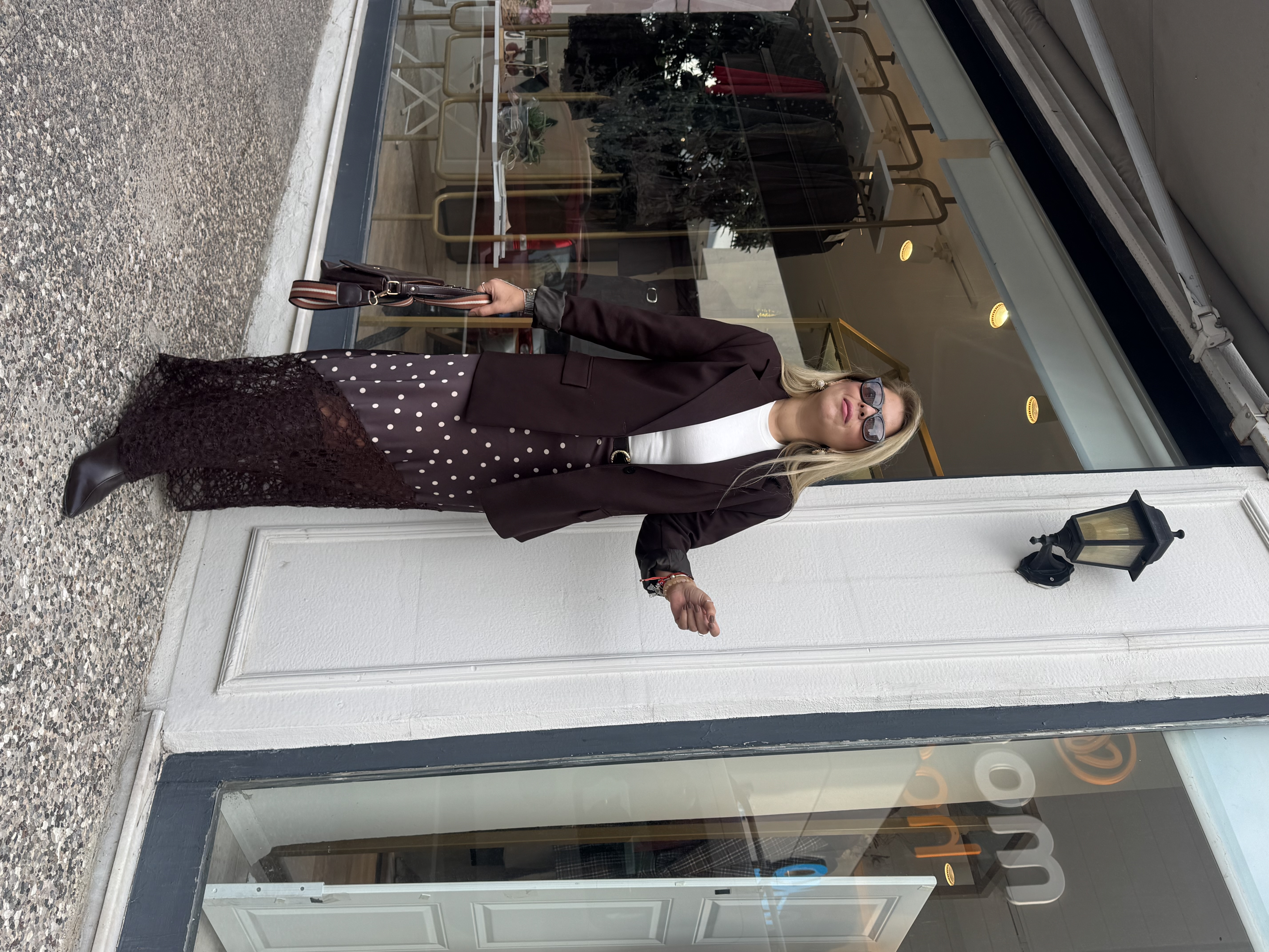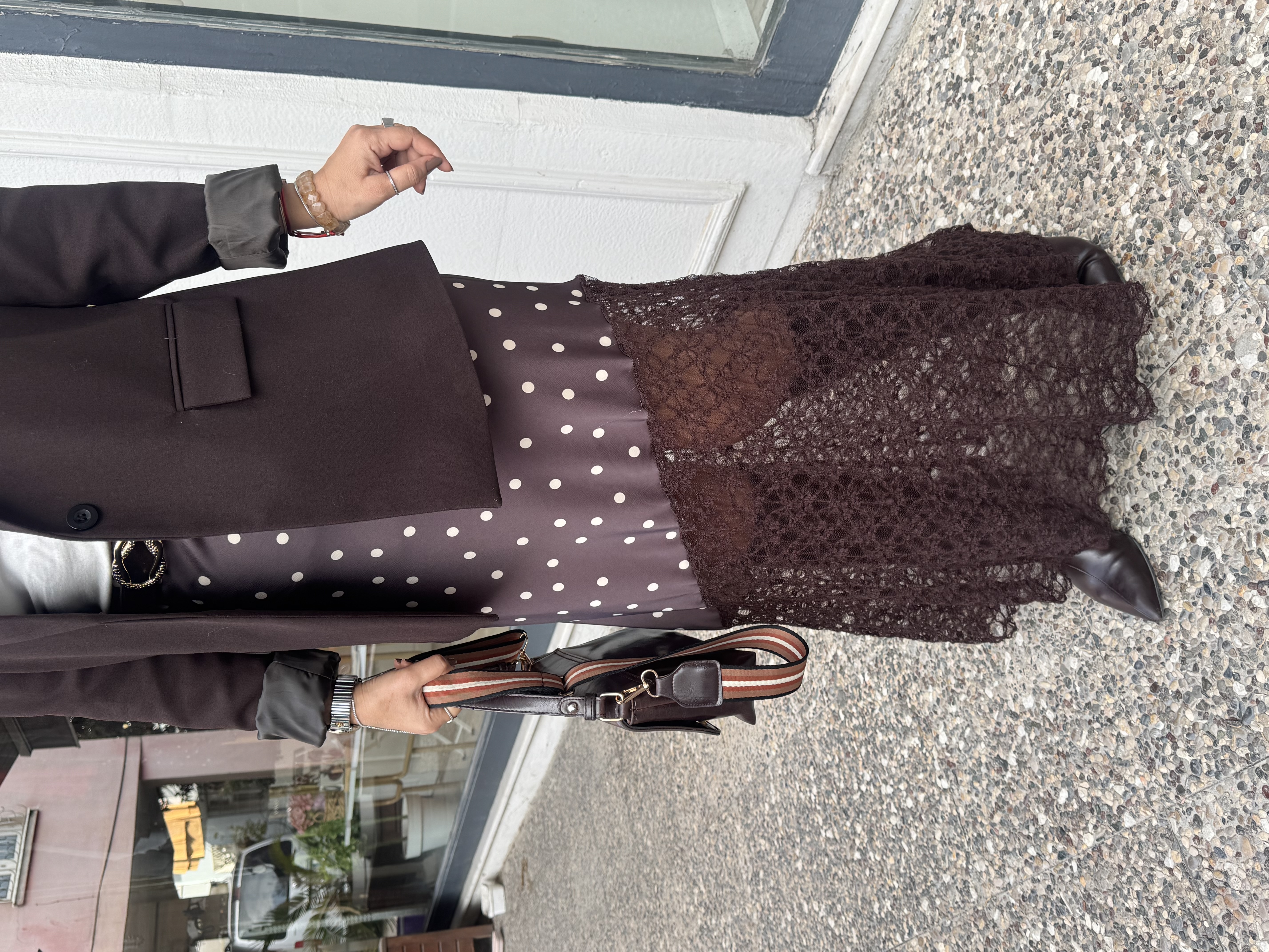 KAHVE PUANTİYELİ DANTELLİ ETEK