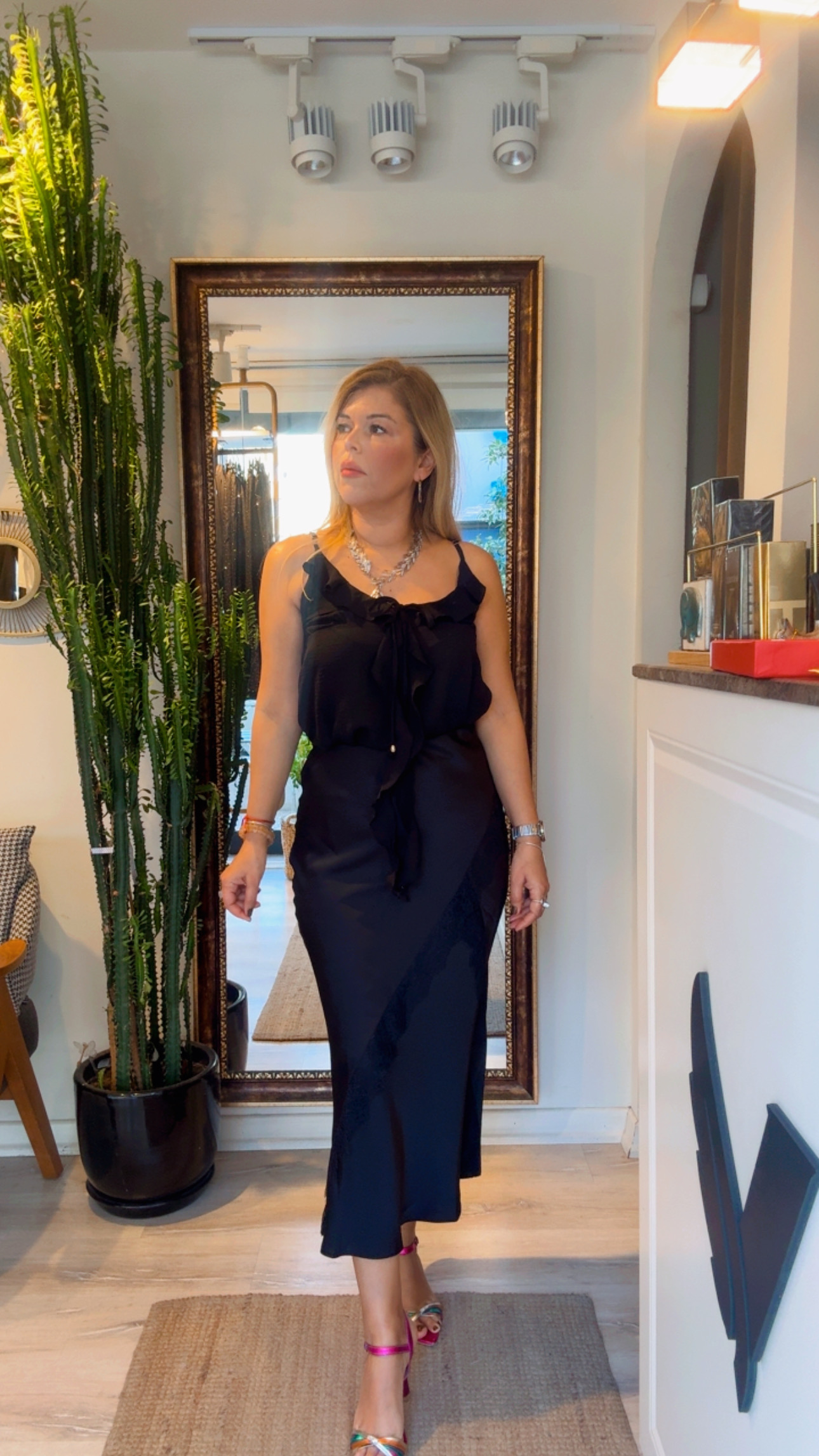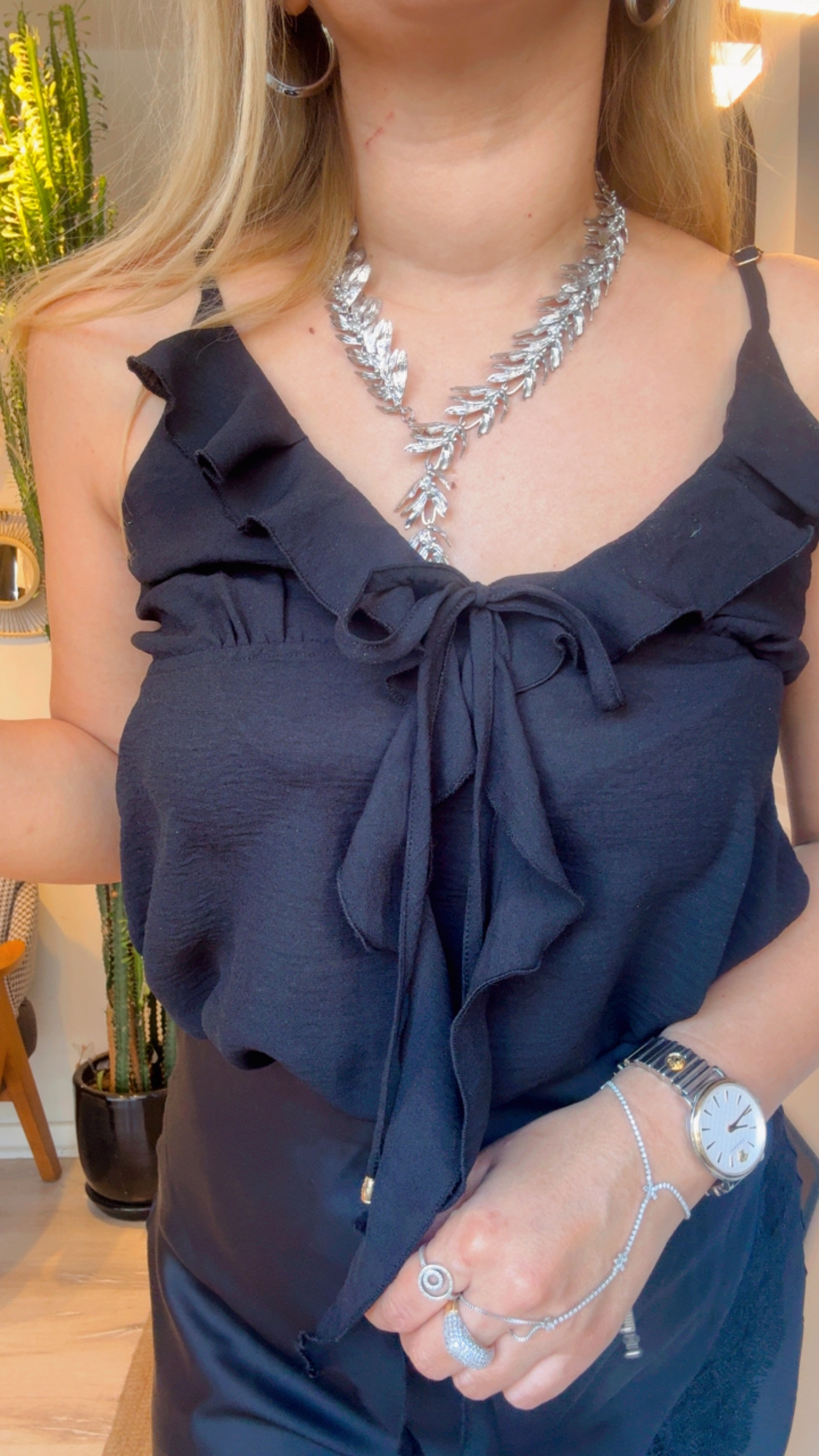 şifon kumaş %100 Polyester önü fiyonklu fırfırlı