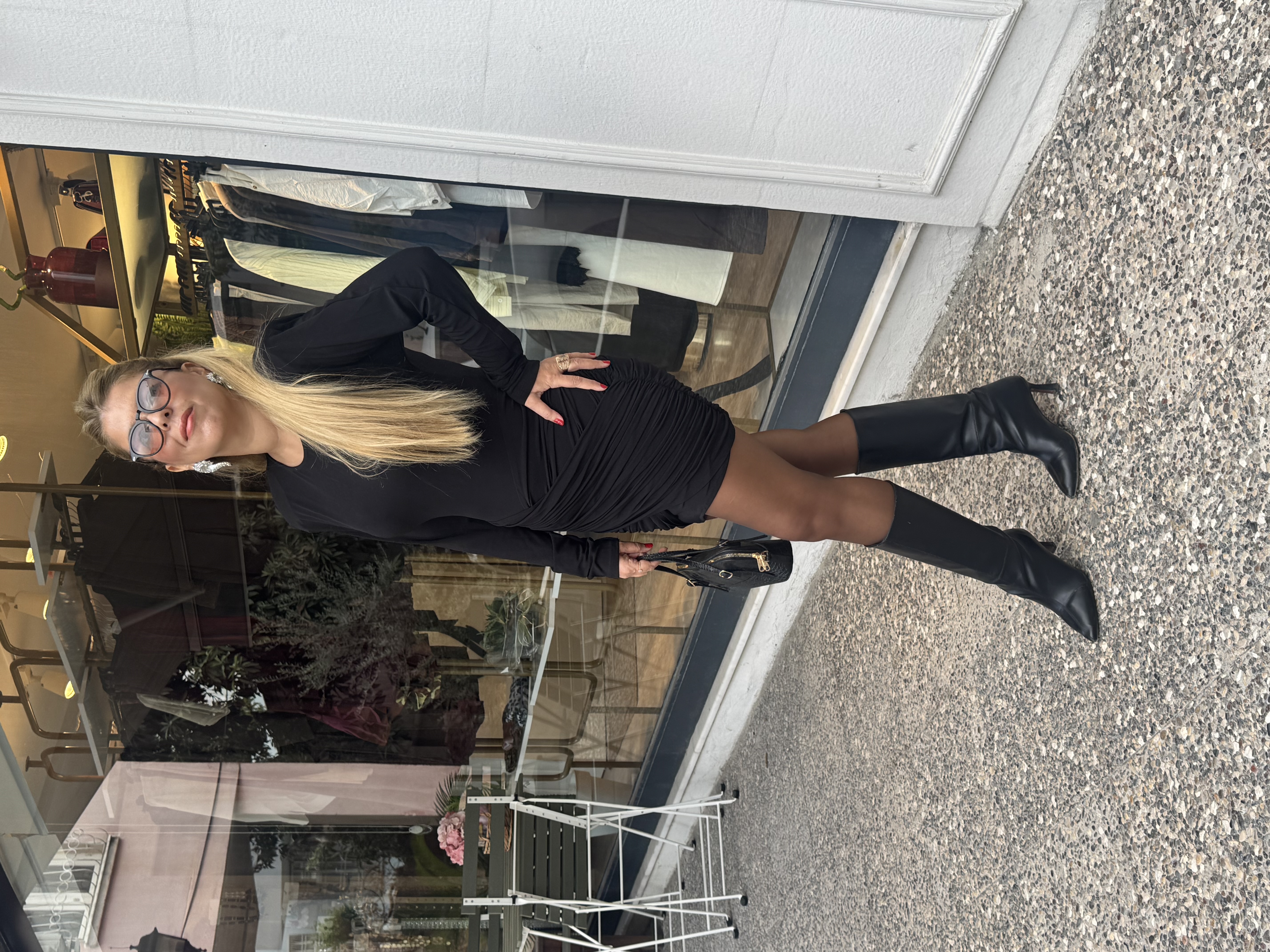 BORDO ETEĞİ KATLI ŞİFON ELBİSE