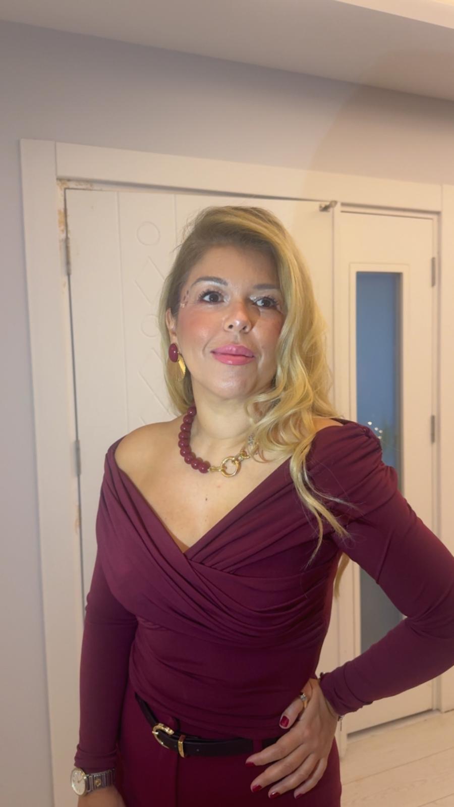 BORDO OMUZ AÇIK BLUZ
