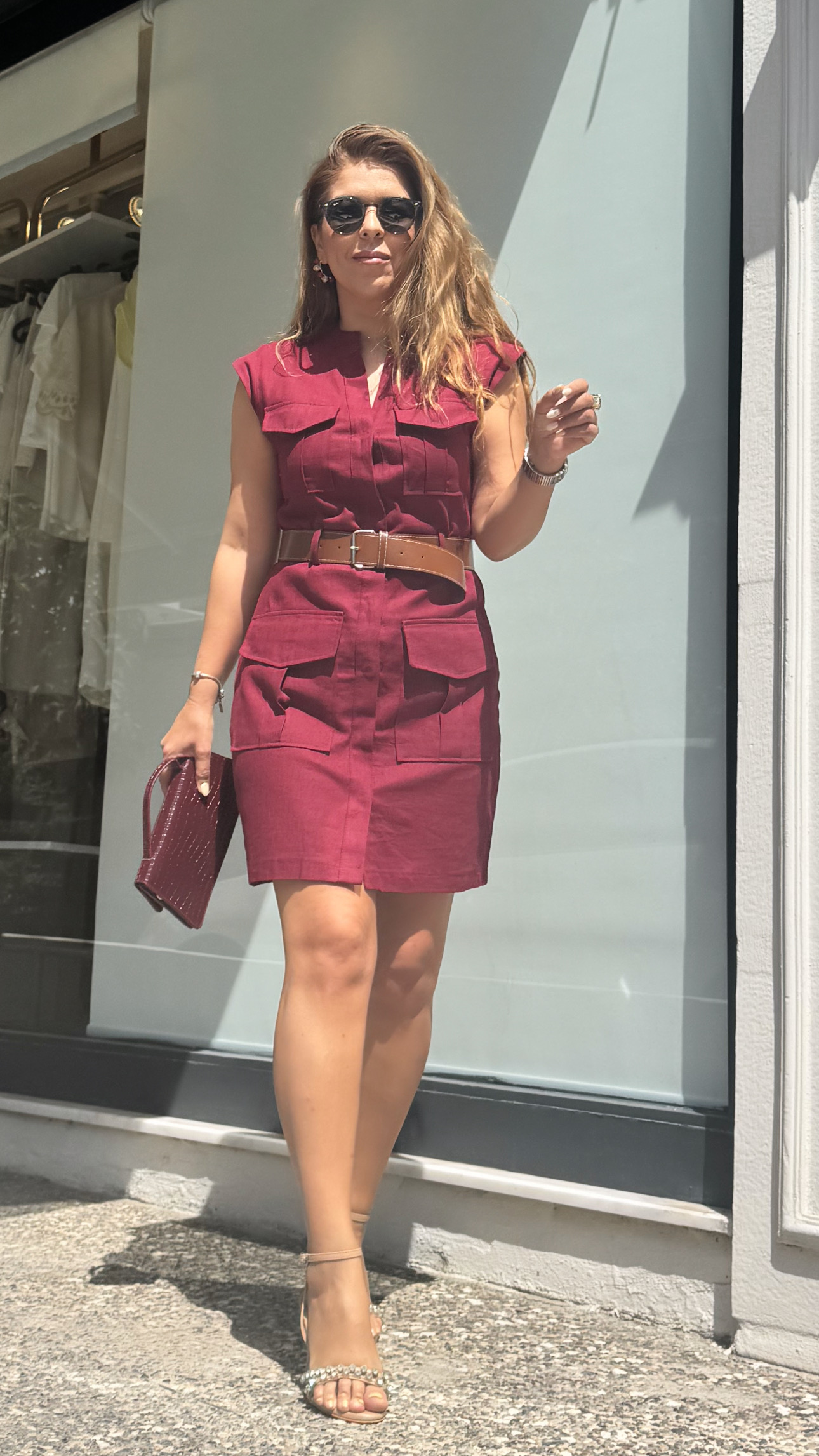 BORDO KEMERLİ MİNİ ELBİSE