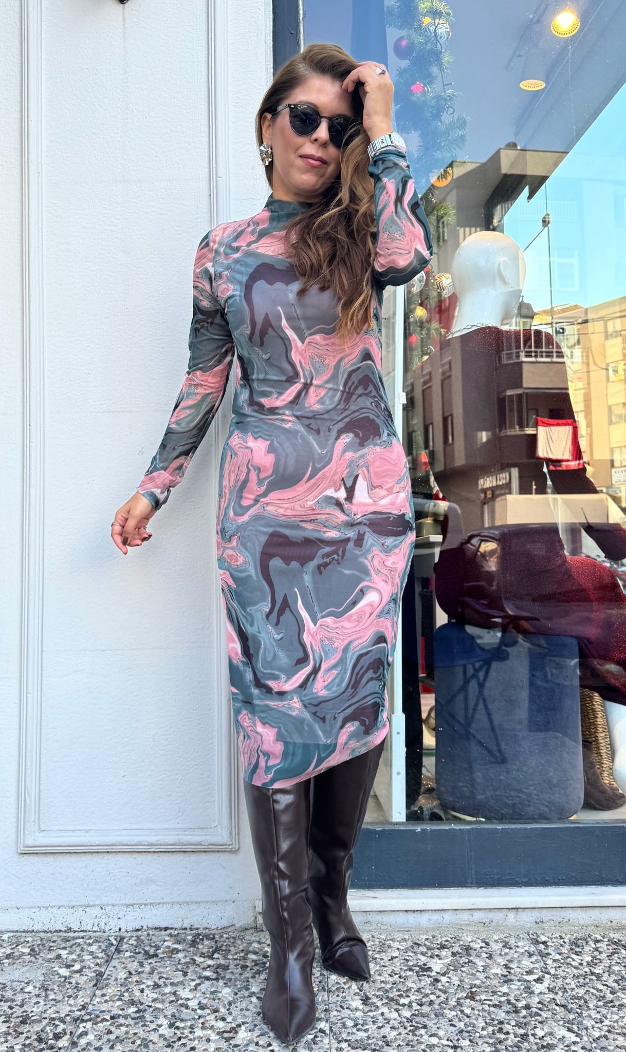 DERİ GEÇİŞLİ ELBİSE