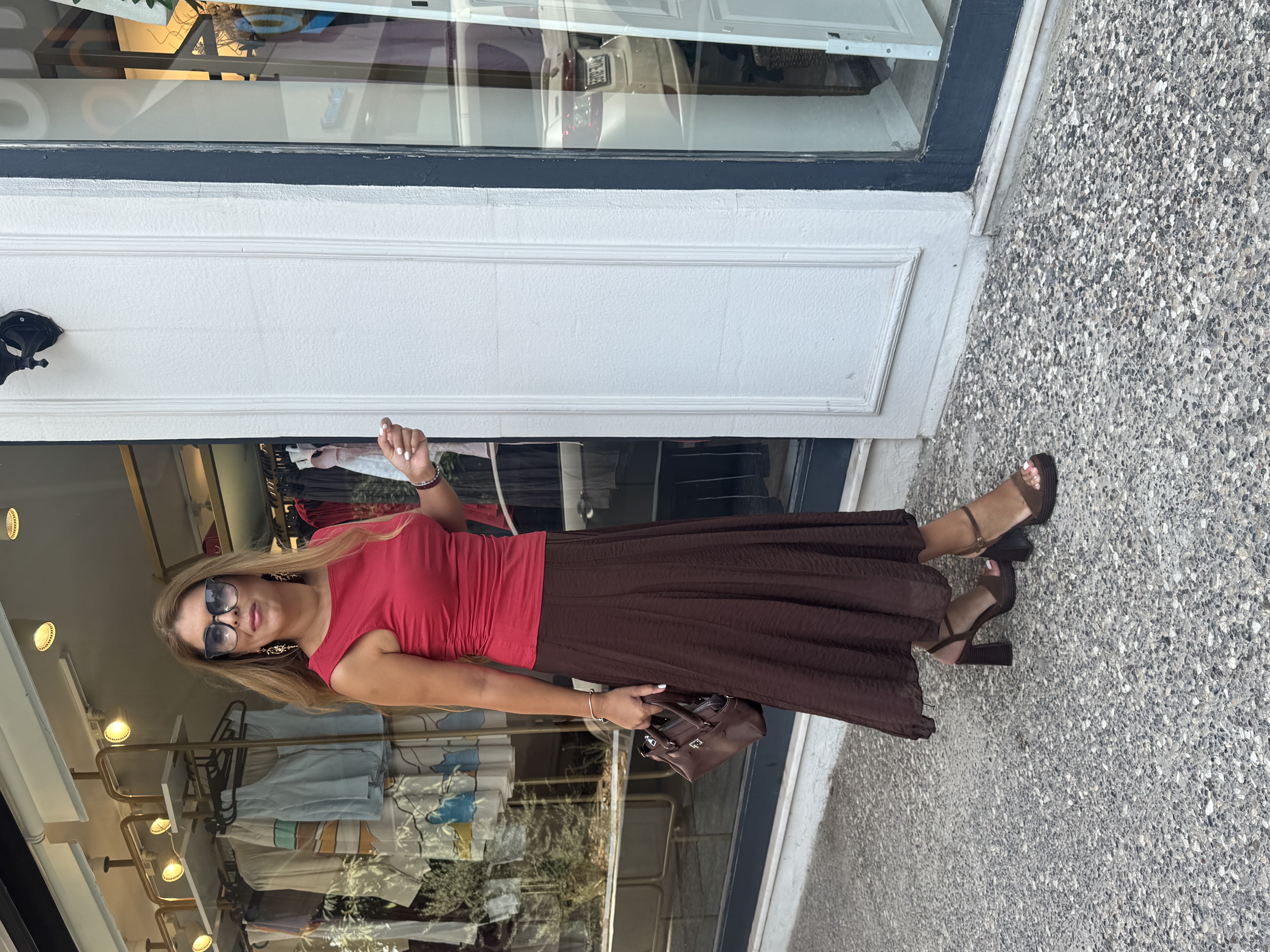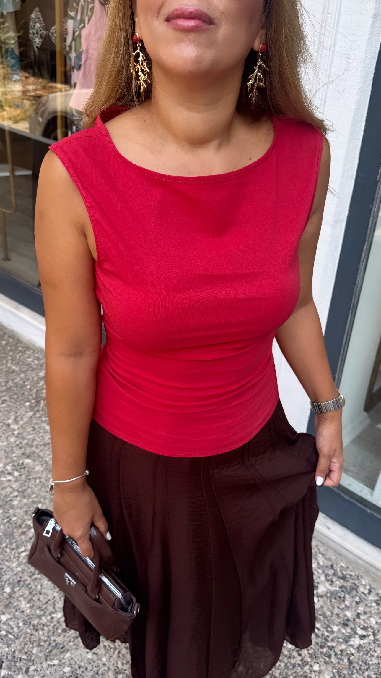 KIRMIZI KAYIK YAKA BÜZGÜLÜ BLUZ