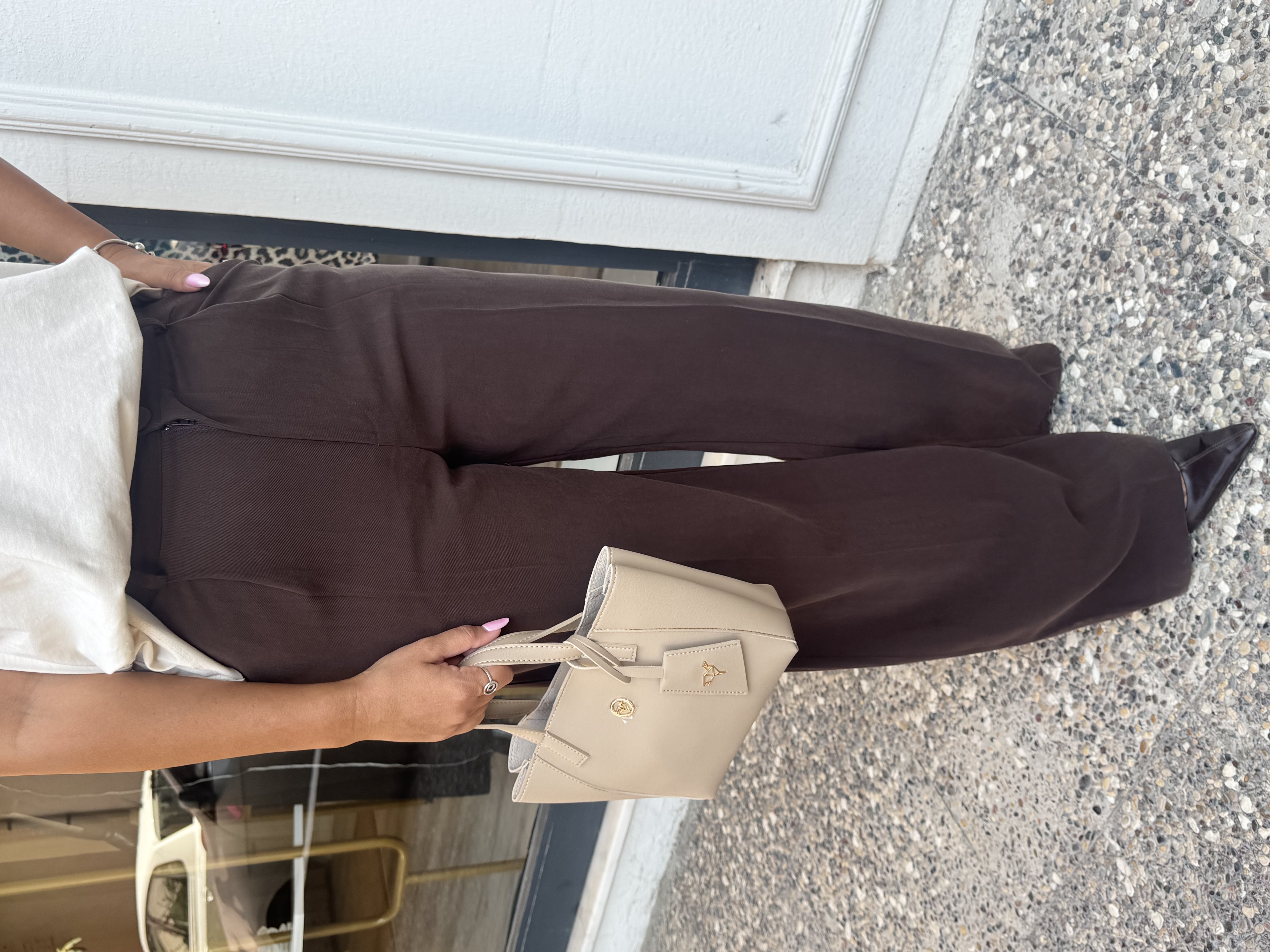 ACI KAHVE PİLELİ PALAZZO PANTOLON