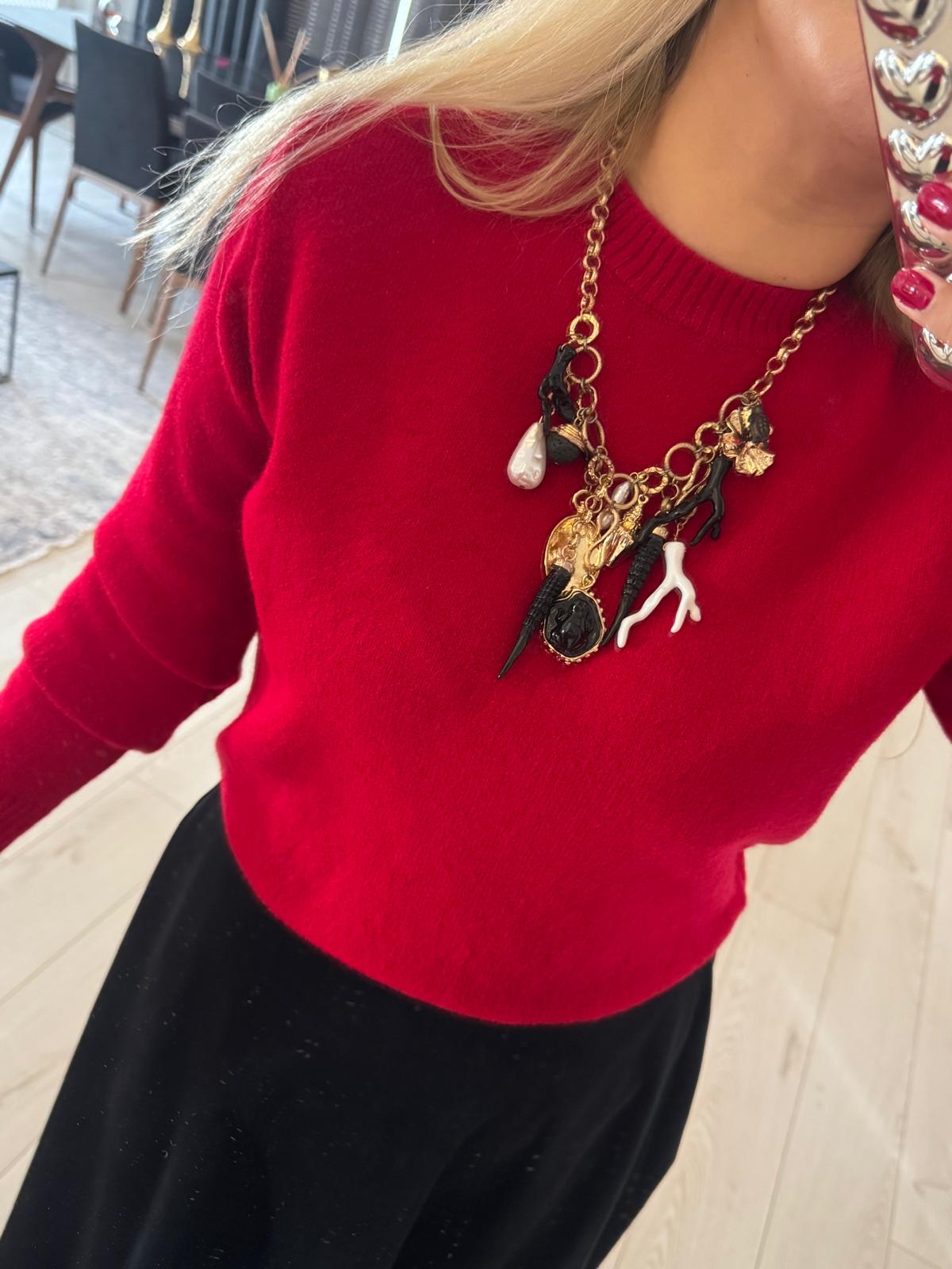 KIRMIZI BİSİKLET YAKA BEL BOY KAZAK