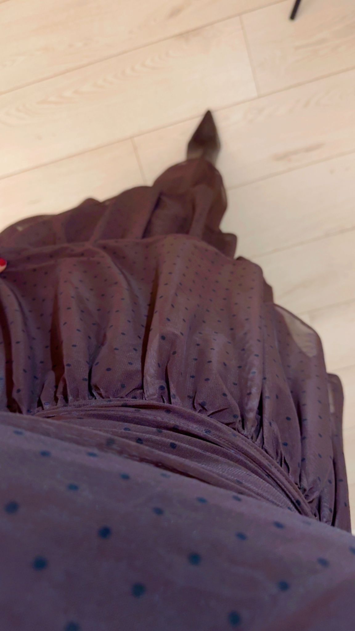 şifon kumaş içi astarlıdır üzerinde kendi tonundan minik puantiyeler vardır