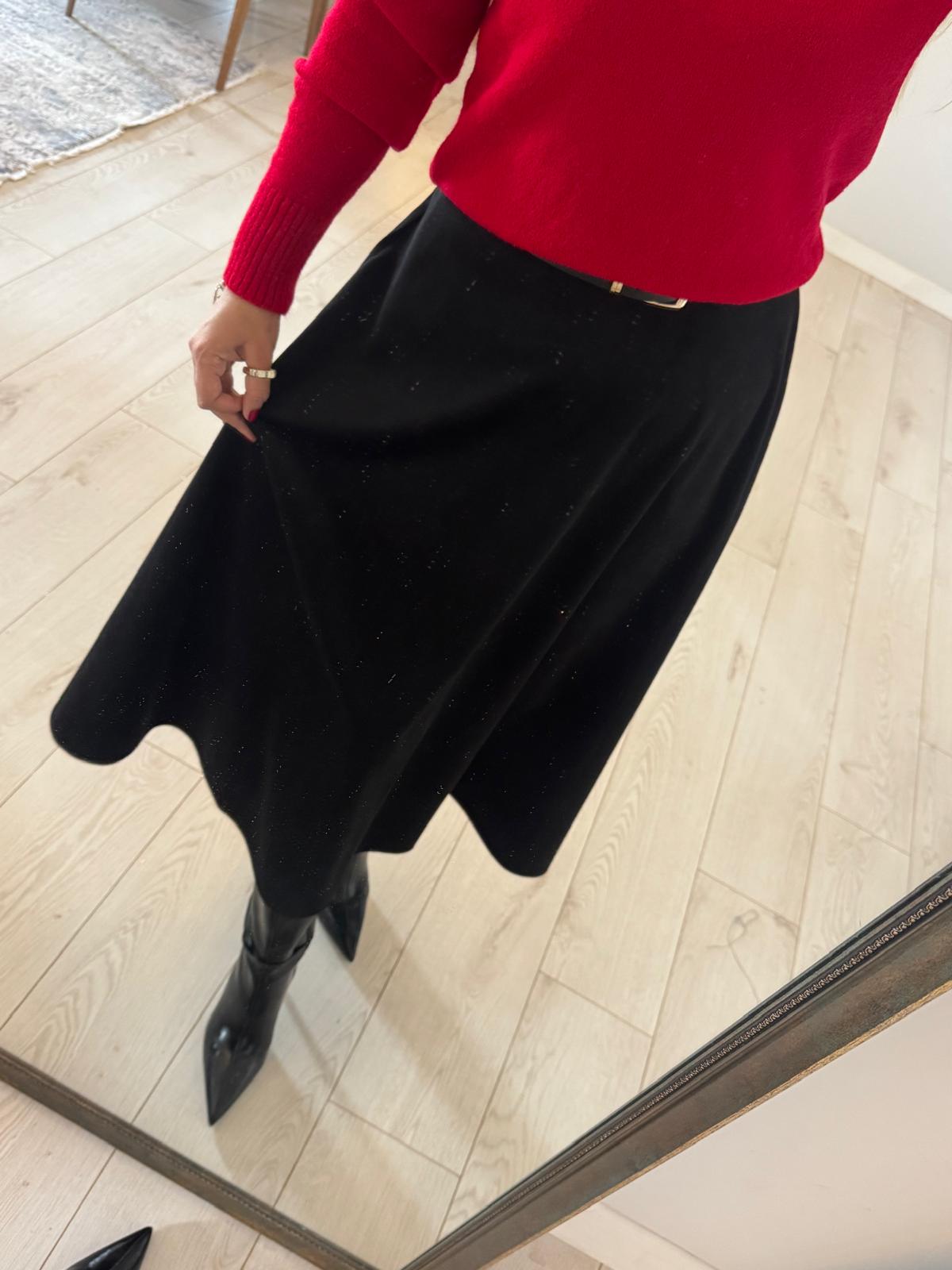SİYAH KADİFE KEMERLİ KLOŞ ETEK
