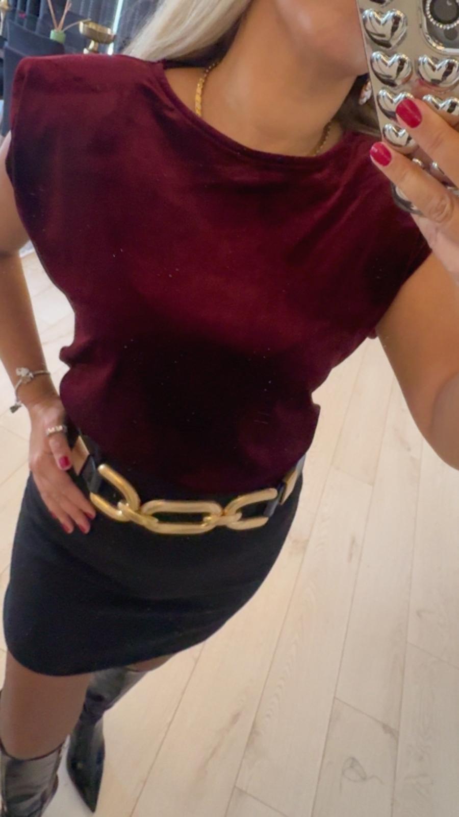 BORDO KADİFE DÖKÜMLÜ BLUZ