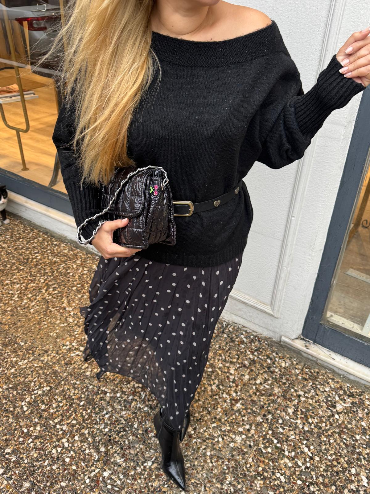 SİYAH DÜŞÜK OMUZ KAZAK