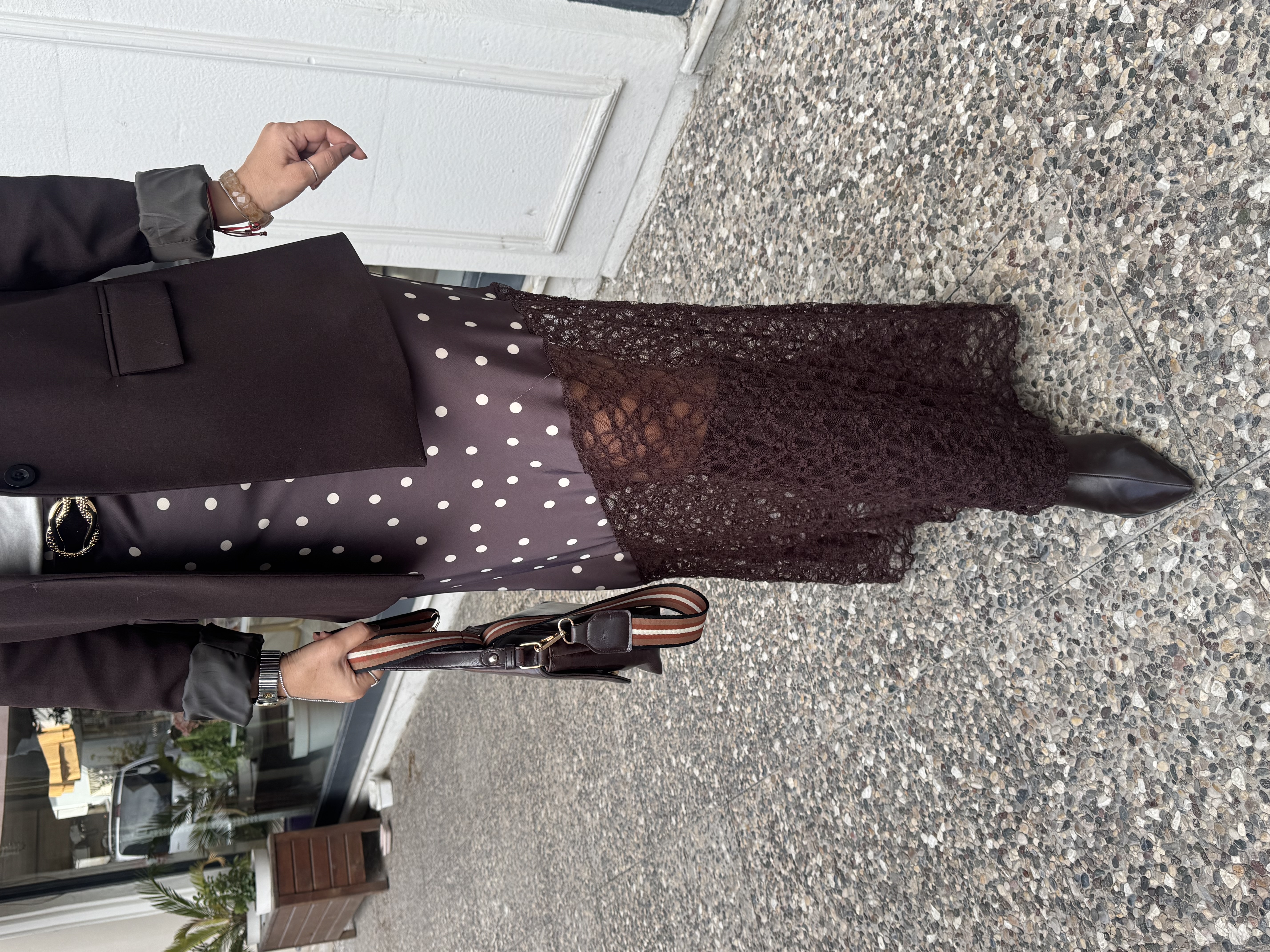 KAHVE PUANTİYELİ DANTELLİ ETEK
