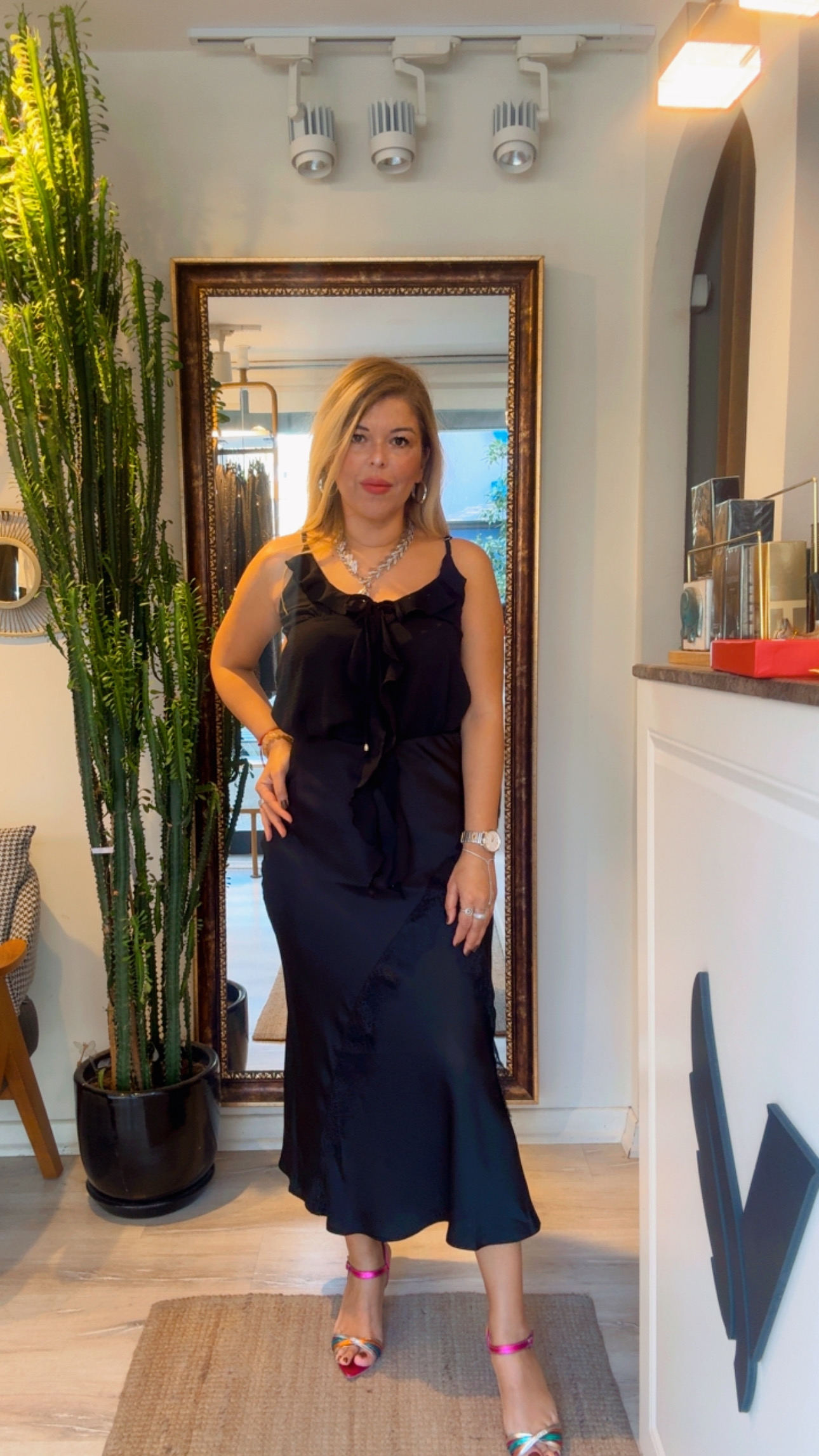 şifon kumaş %100 Polyester önü fiyonklu fırfırlı