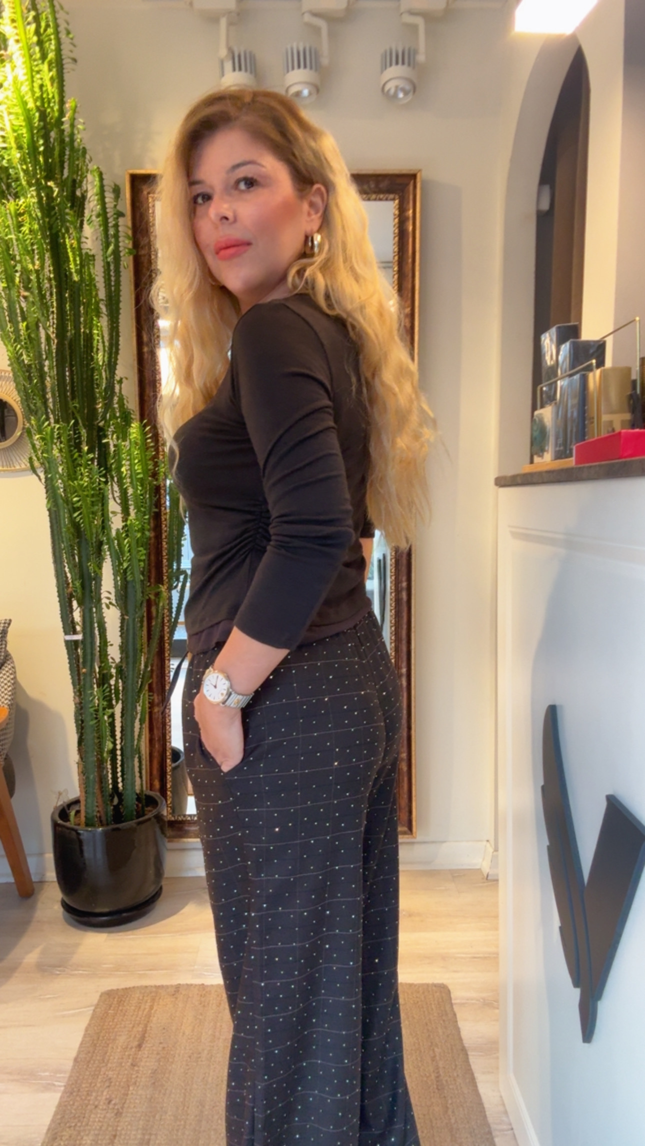 ACI KAHVE TÜL DETAYLI BLUZ