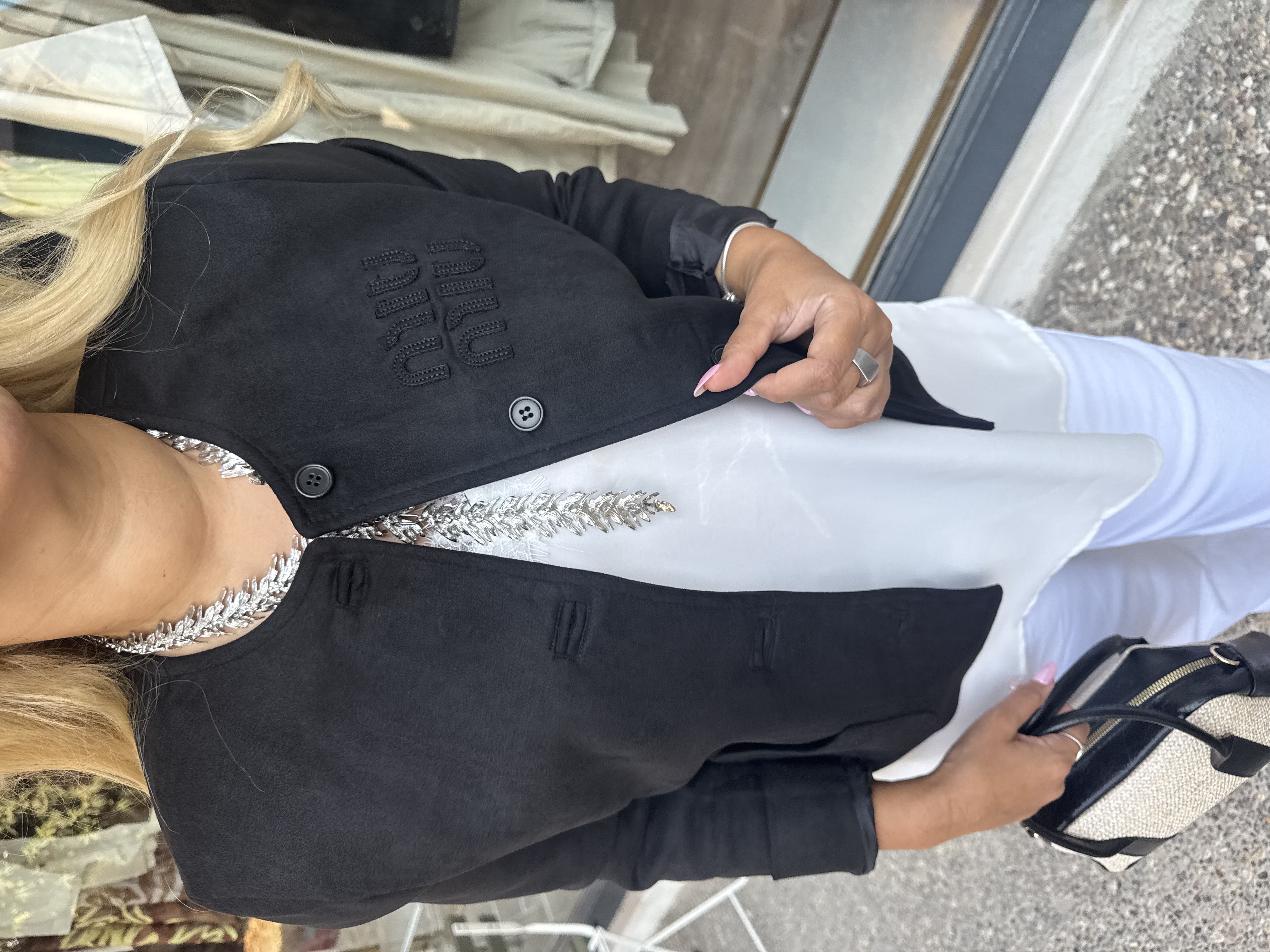 SÜET DÜĞMELİ SİYAH CEKET