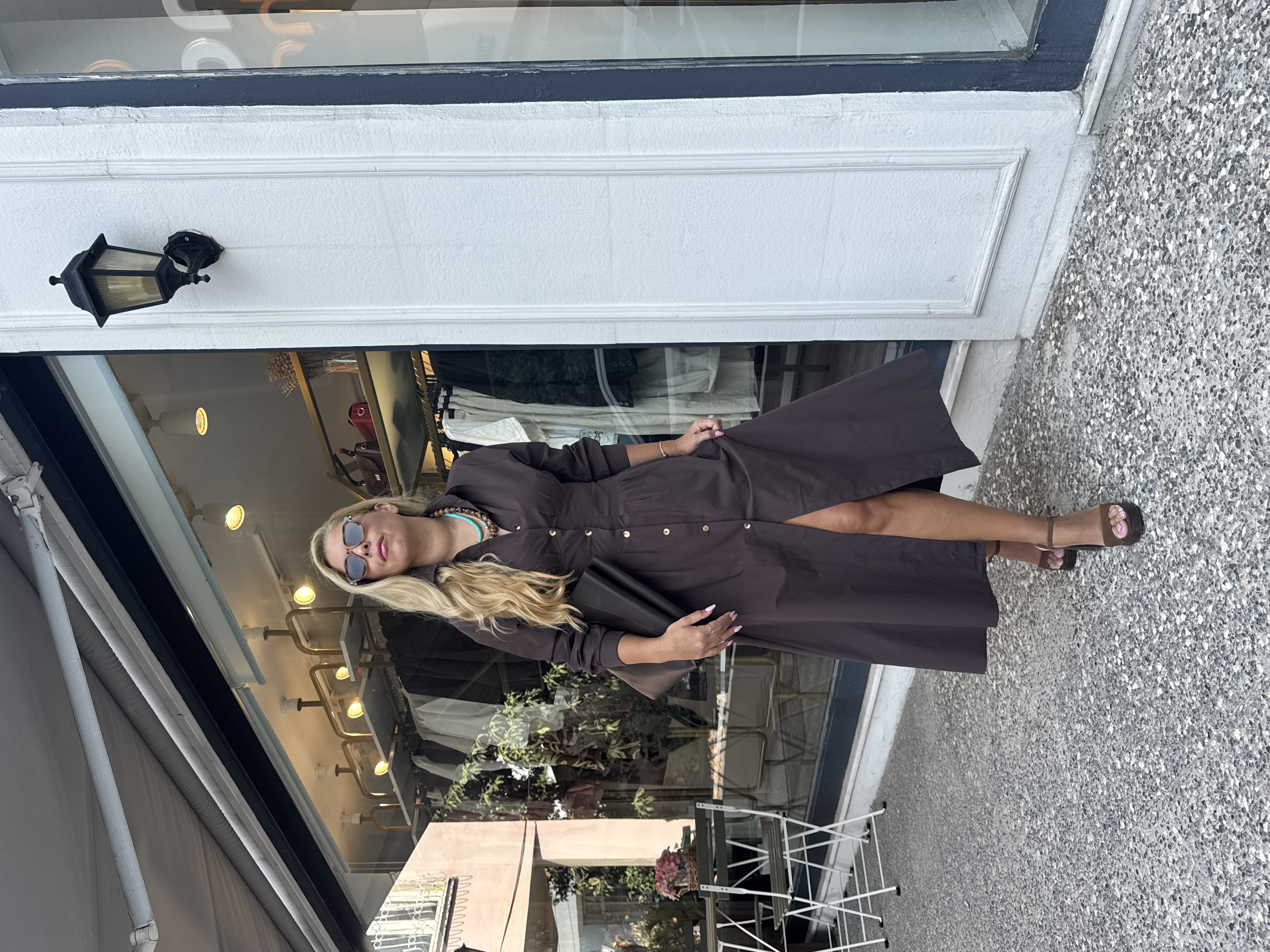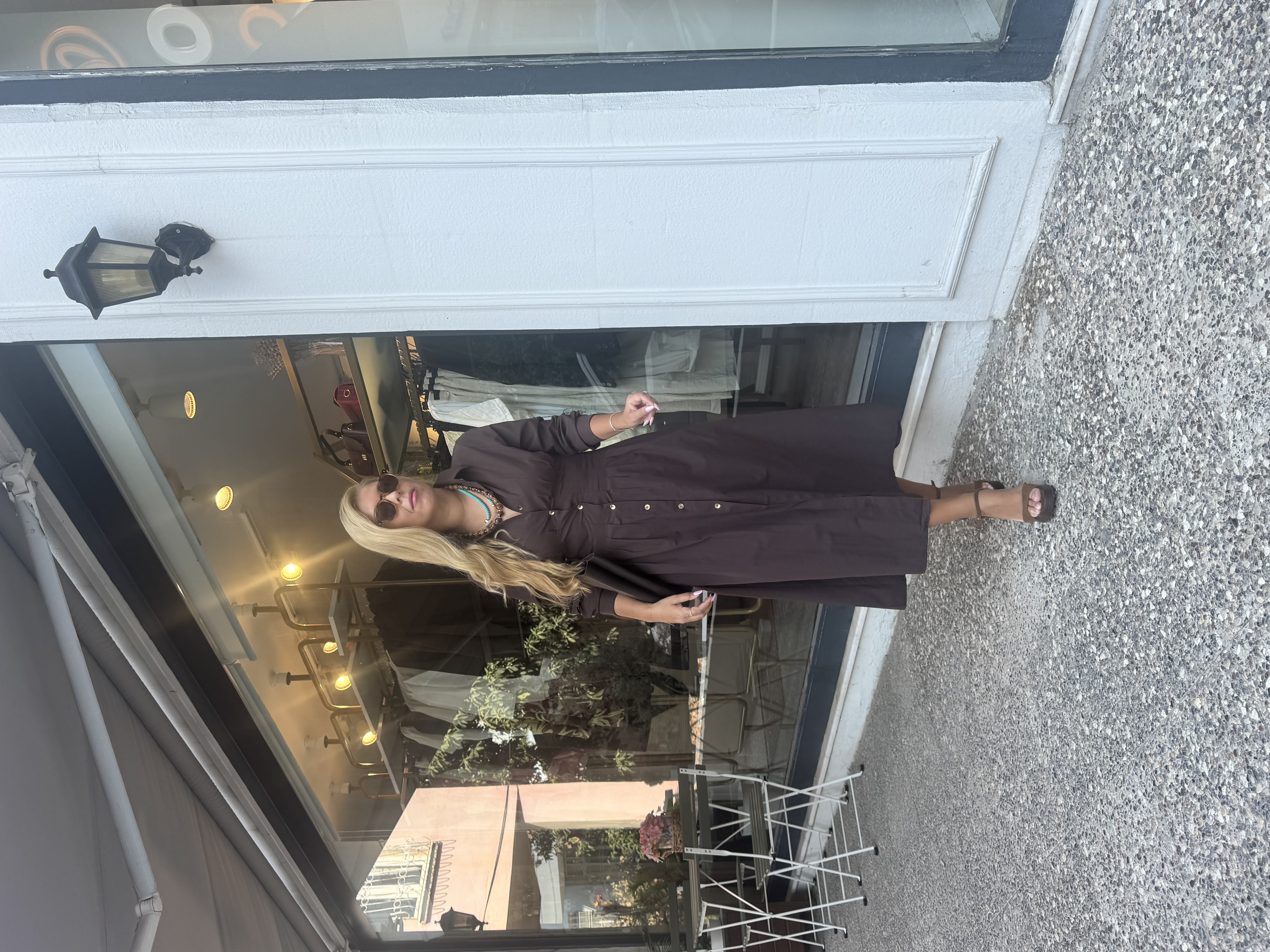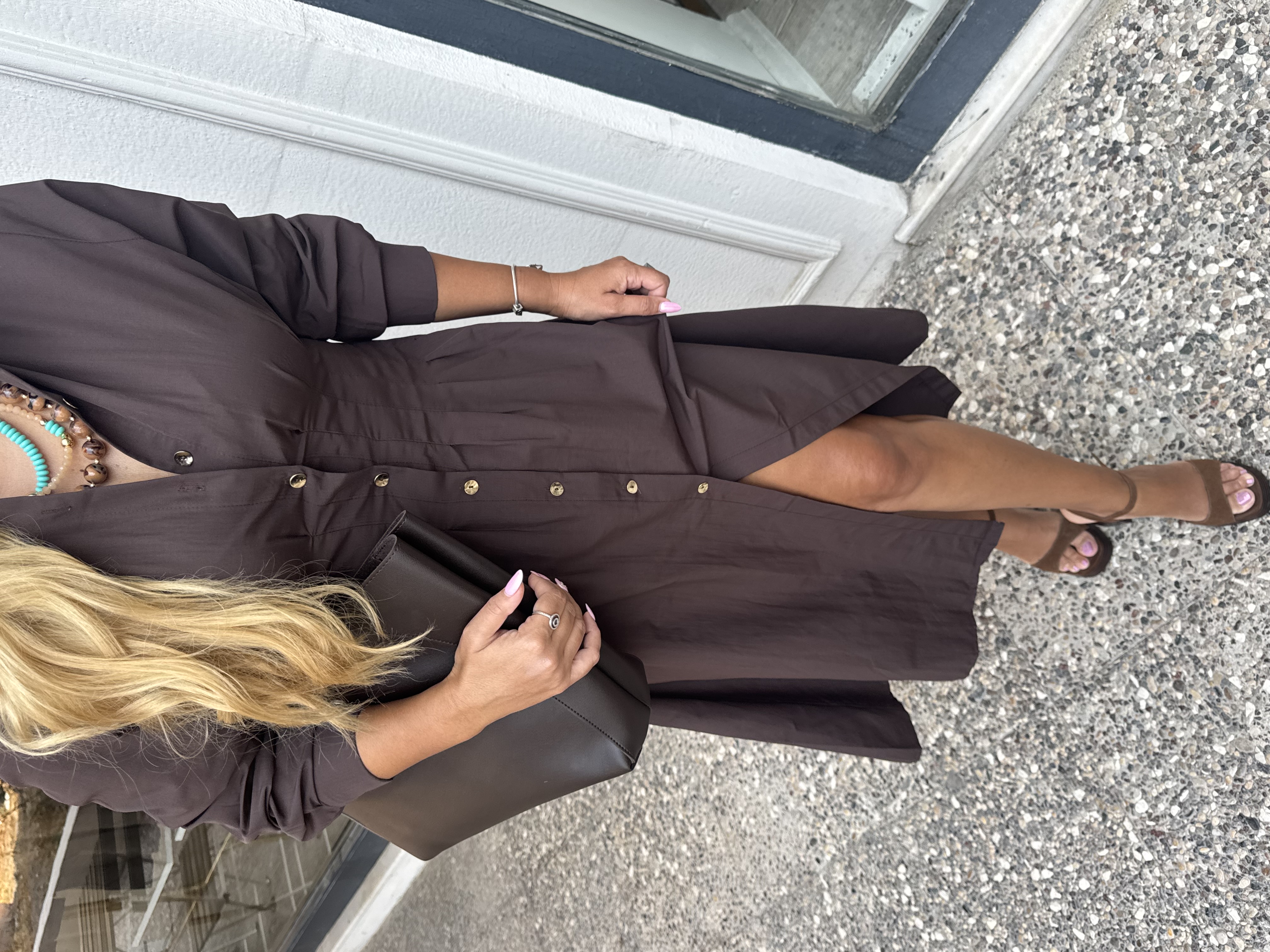 ACI KAHVE GOLD DÜĞMELİ ELBİSE