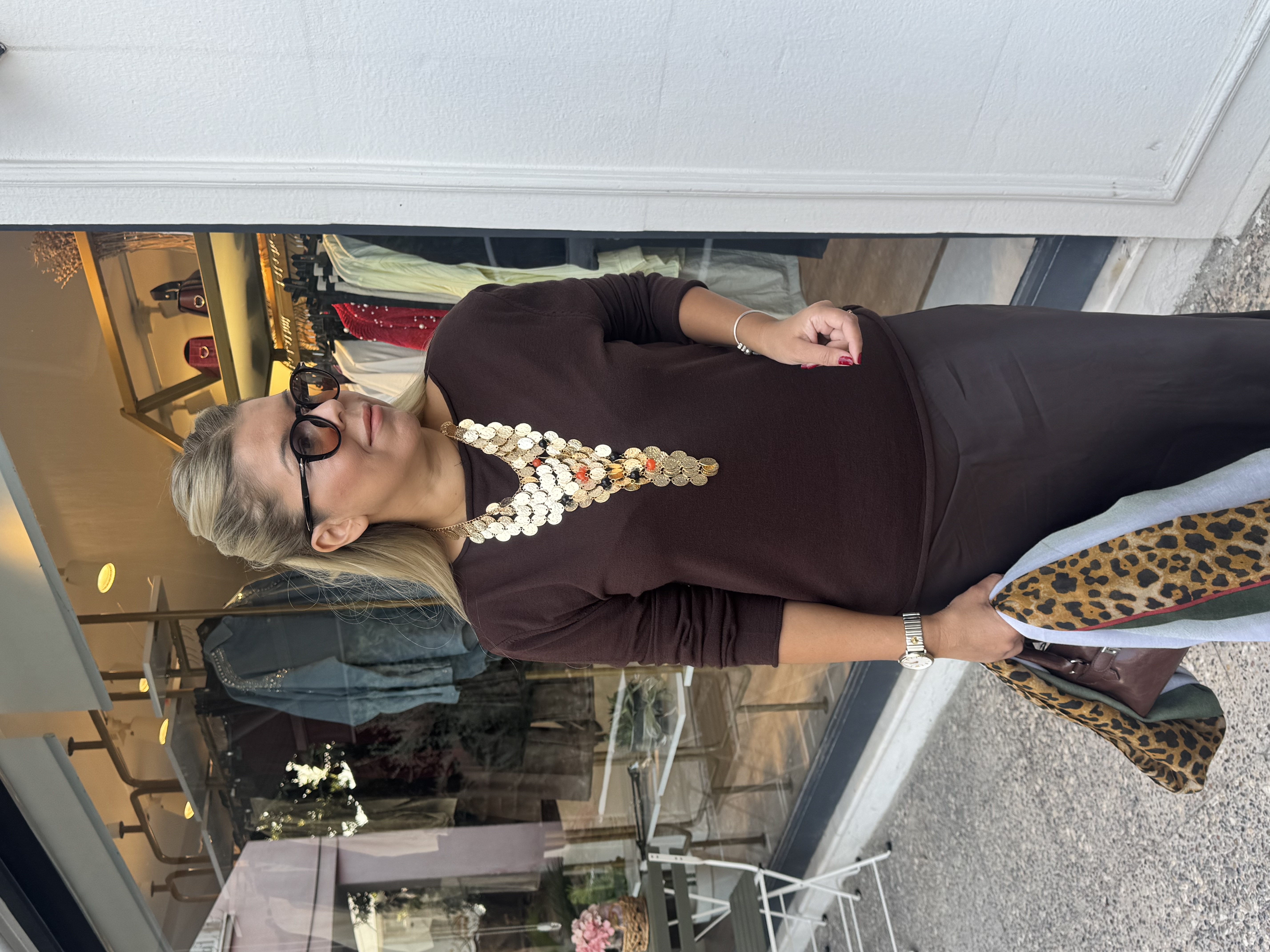 ORJ. MARKA ACI KAHVE KAYIK YAKA BLUZ