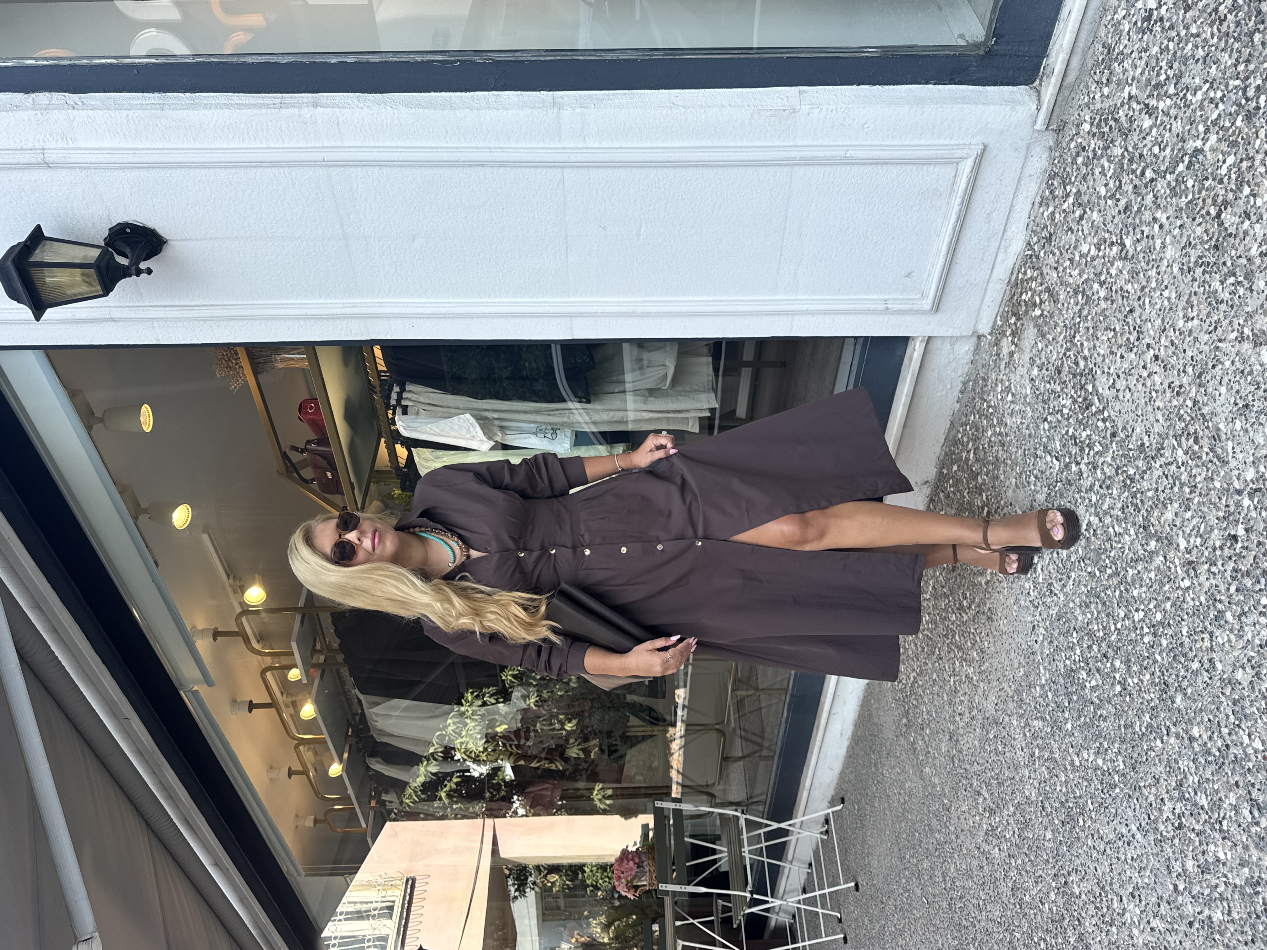 ACI KAHVE GOLD DÜĞMELİ ELBİSE